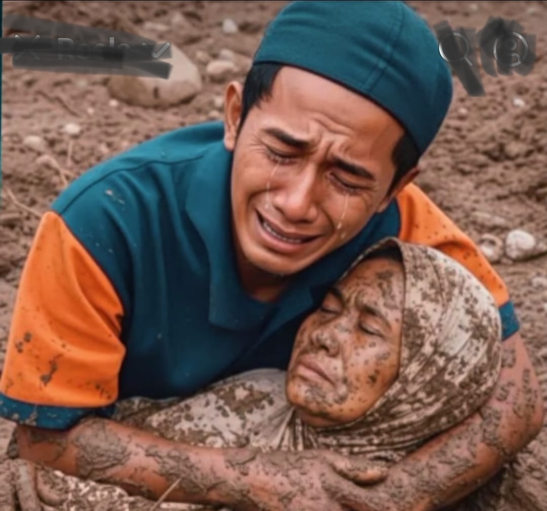 Foto depan : Seorang Bapak sedang Meratapi Istrinya yang sudah meninggal akibat Banjir dan Tanah Longsor.