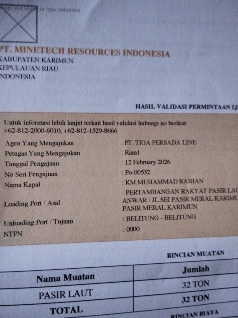 Detiksorotan.com,Karimun– Koordinator Komite Anti Korupsi Indonesia (KAKI) Pusat, Cecep Cahyana, menyoroti dugaan pelanggaran prosedur keberangkatan kapal pengangkut pasir laut di wilayah Pos Syahbandar Meral, Kabupaten Karimun.