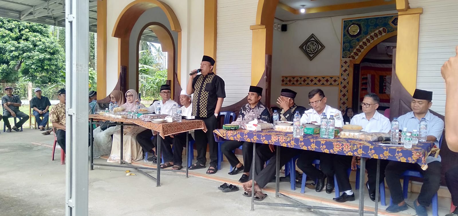 Perwakilan keluarga donatur, Ibuk Hajah Armita bersama anaknya Riki yang berdomisili di Ujung Batu dan dikenal sebagai pengusaha toko emas Delima, juga turut hadir dalam prosesi tersebut.